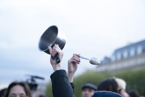 Night demonstration against the pension reform on Monday, April 24, 2023: concert of pans in front of the City Hall, return of Ndiaye to Gare de Lyon and burning trash cans in the streets of Paris.