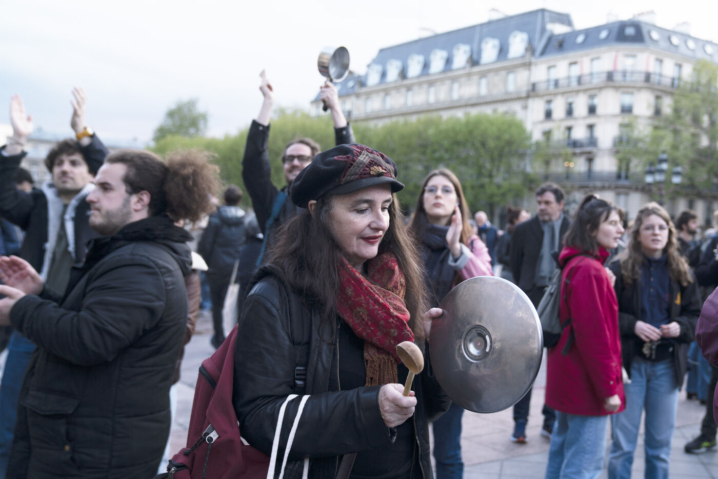 Manifestation nocturne contre la réforme des retraites le lundi 24 avril 2023 : concert de casseroles devant l'Hôtel de ville, retour de Ndiaye à Gare de Lyon et poubelles en feu dans les rues de Paris.