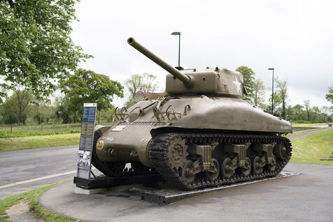 Illustration du Overlord Museum, musée consacré à la bataille de Normandie, à Colleville-sur-Mer. Le musée retrace l'histoire des six armées engagées dans la bataille de Normandie, du débarquement à la libération de Paris. Il se trouve près de la plage d'Omaha Beach, un des sites du débarquement allie du 6 juin 1944, symbole de la Seconde Guerre Mondiale. Le 10 mai 2023.