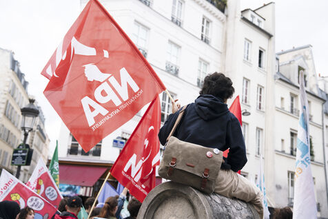 Gathering of students who did not obtain a master's degree and of all sans-fac students as part of the day of mobilization against university selection, on Tuesday, September 19, 2023, in front of the Ministry of Higher Education. Shortly after the start of the new academic year, many students have failed to obtain a course of study via Parcoursup or find my master's degree.