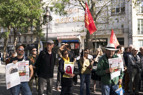 Demonstration in support of Afghan women and to demand immediate asylum for persecuted Afghan women including Julia Parsi and Neda Parwani, Place de la Bastille, October 7, 2023.