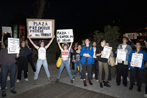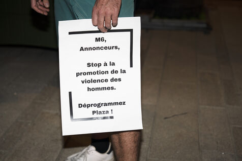 Rassemblement pour dénoncer le soutien de la chaîne M6 à Stéphane Plaza après les accusations de violences conjugales à son encontre