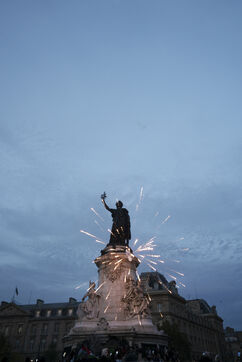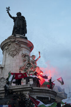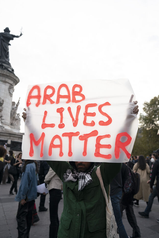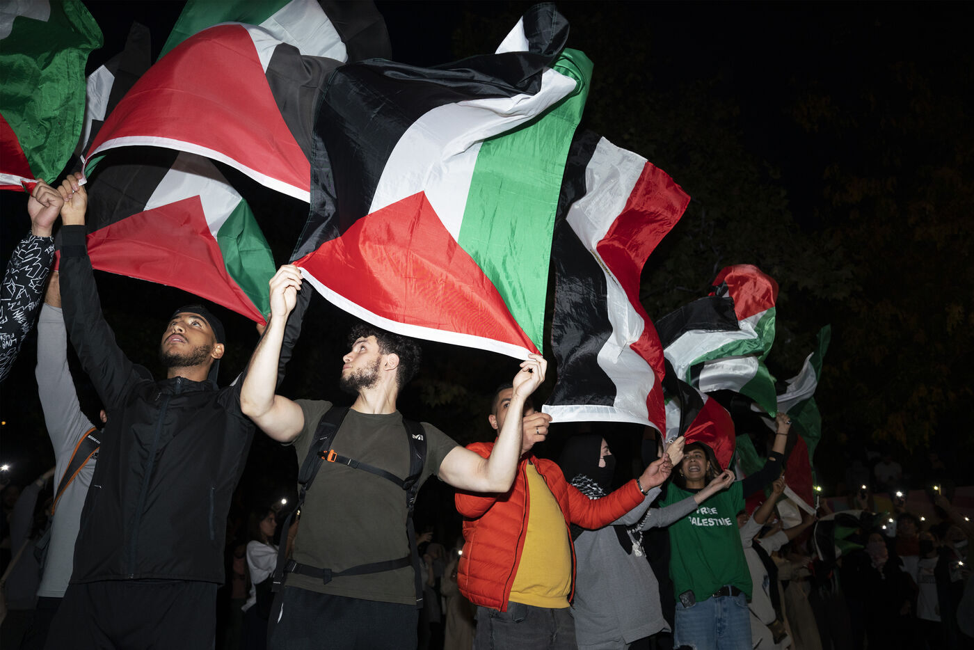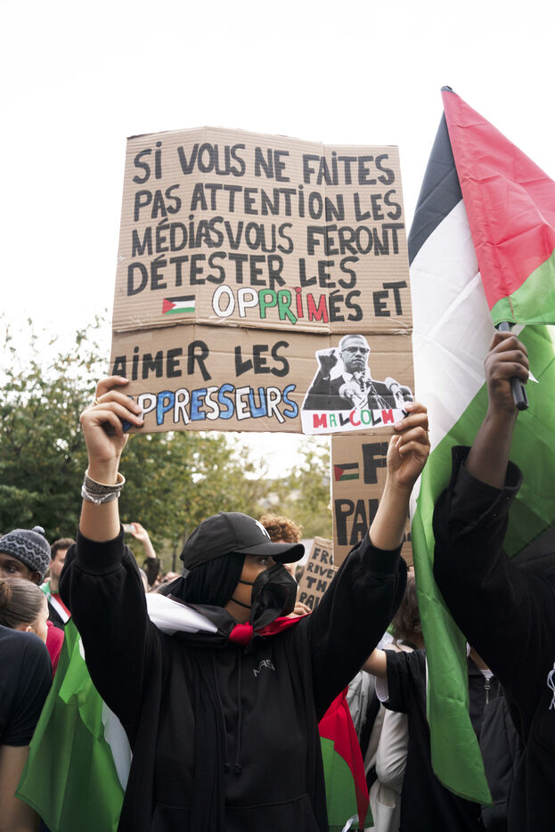 Gathering in support of the Palestinian resistance in Place de la République, Paris, following the recent clashes between Israel and Hamas. Gaza City has been repeatedly bombed and many Palestinian civilians killed. October 12, 2023, Paris.