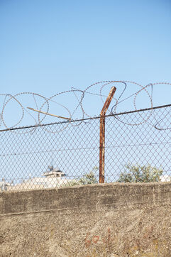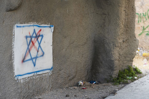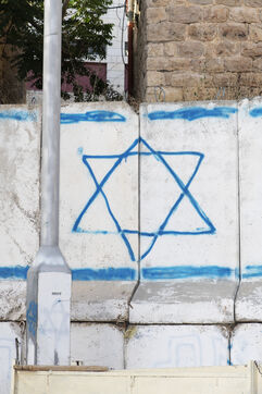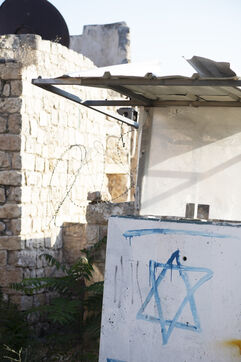 The Palestinian town of Hebron (or al-Khalil) in the West Bank: walls, barricades and barbed wire to divide the town between Palestinian territory and areas occupied by Israeli settlers. Palestine, Hebron, June 2, 2019.