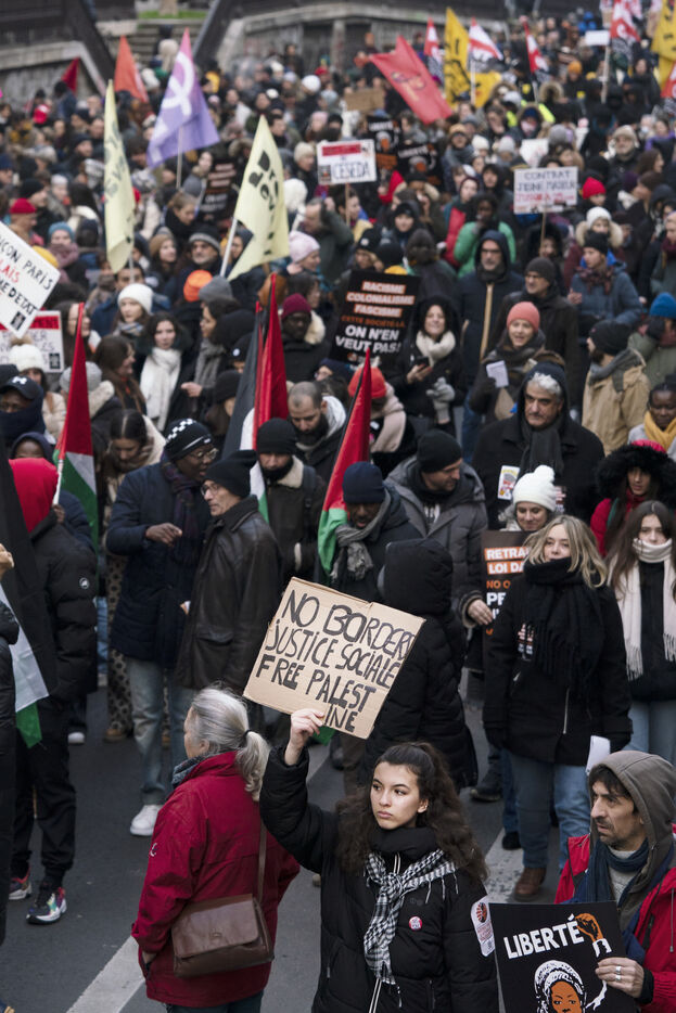 Demonstration against Darmanin's immigration law after its adoption last December, notably with the votes of the Rassemblement National. The bill provides for even greater repression and precariousness for undocumented and foreign workers. The demonstration, which left from Place de la République, called for the regularization of all undocumented workers in Paris on Sunday, January 14, 2024.