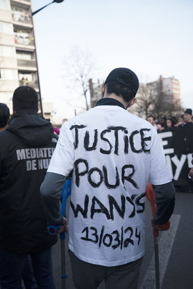 White March "Justice for Wanys and Ibrahim" in La Courneuve, in response to a call from the family of the young man who died on a scooter after colliding with a police car in Aubervilliers on March 13. March 21, 2024, La Courneuve.