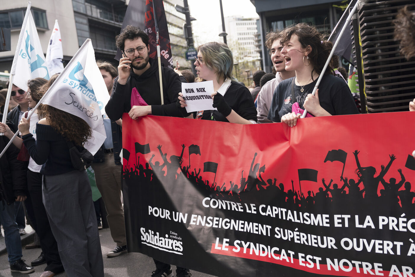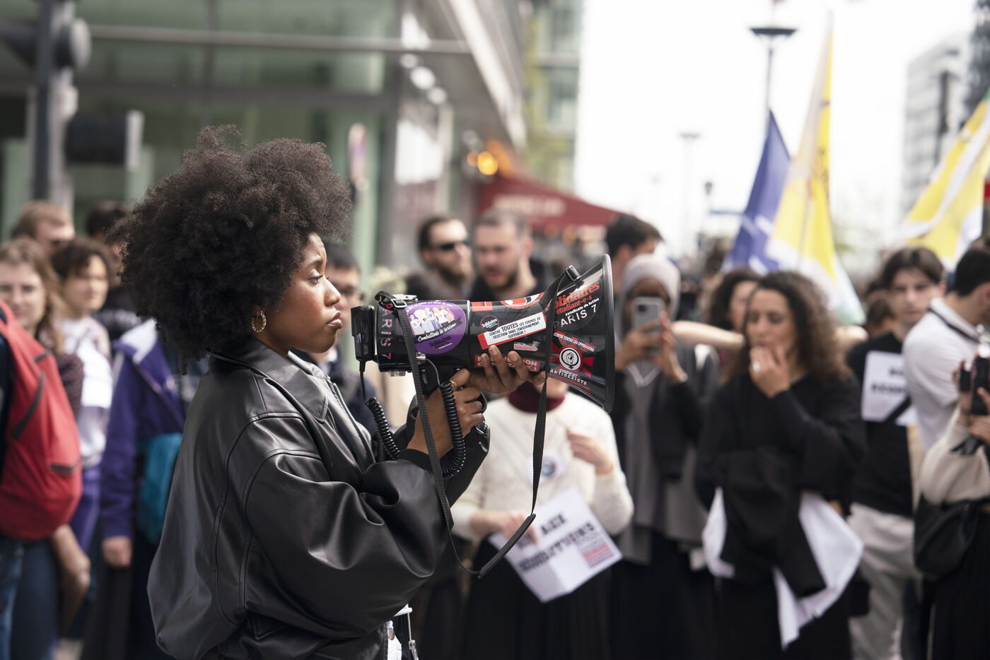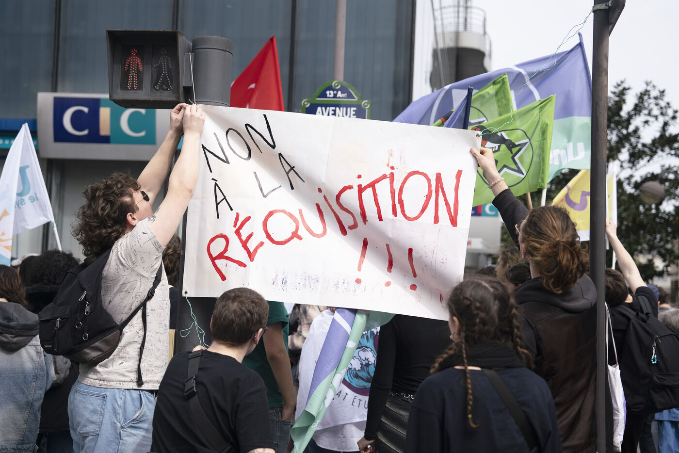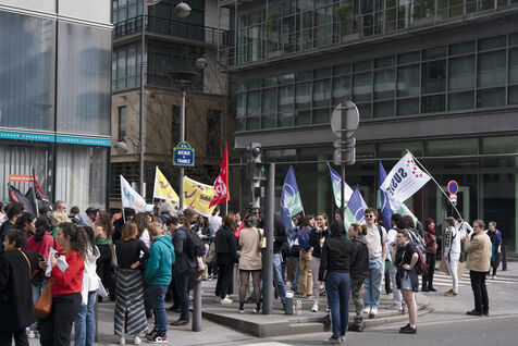 Demonstration against student evictions for the 2024 Olympics, in front of the Ministry of Sport and the Olympics, Saturday April 6, 2024. Many students have had their crous accommodation requisitioned, and even before the end of their academic year, for the Paris Olympics taking place this summer.
