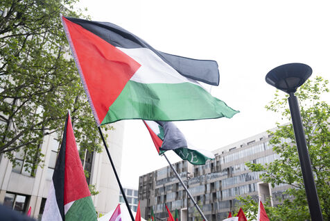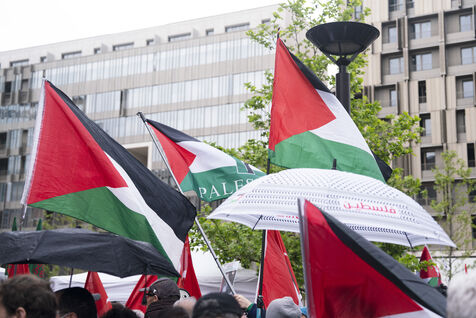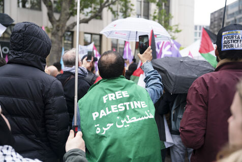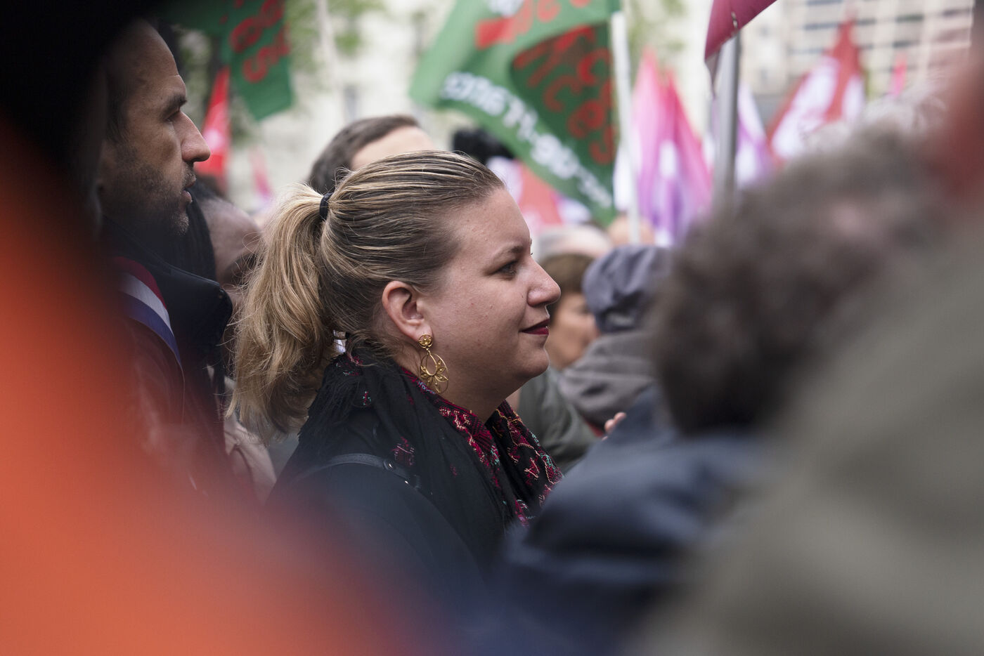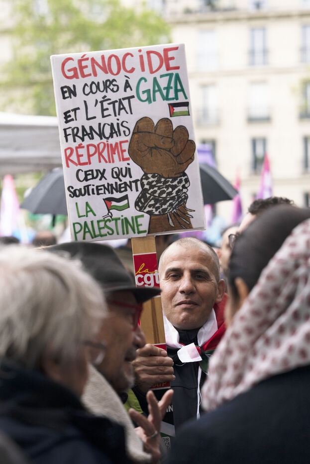 Gathering against the criminalization of voices for peace, in support of Mathilde Panot and Rima Hassan summoned by the police for apologie for terrorism this Tuesday, April 30, 2024, in Paris.
