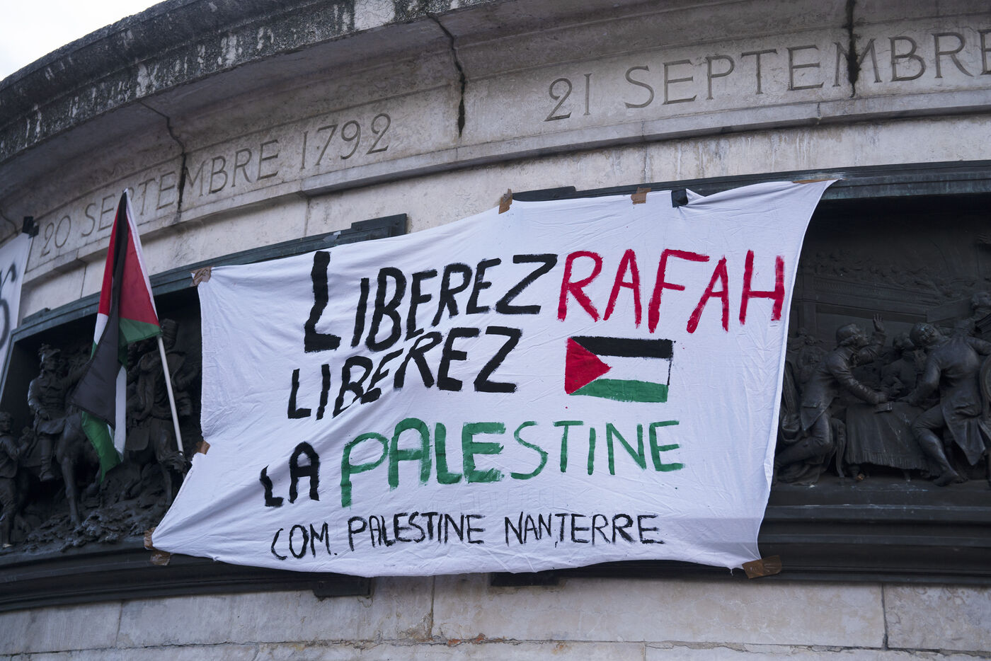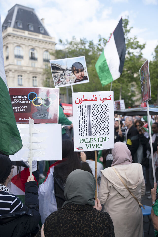 Gathering to denounce the massacre at Rafah and support the Palestinian people, Place de la République, Paris. May 7, 2024.