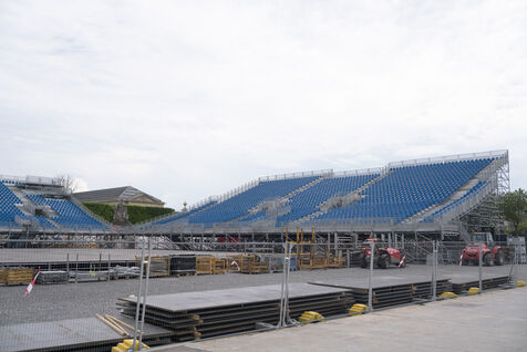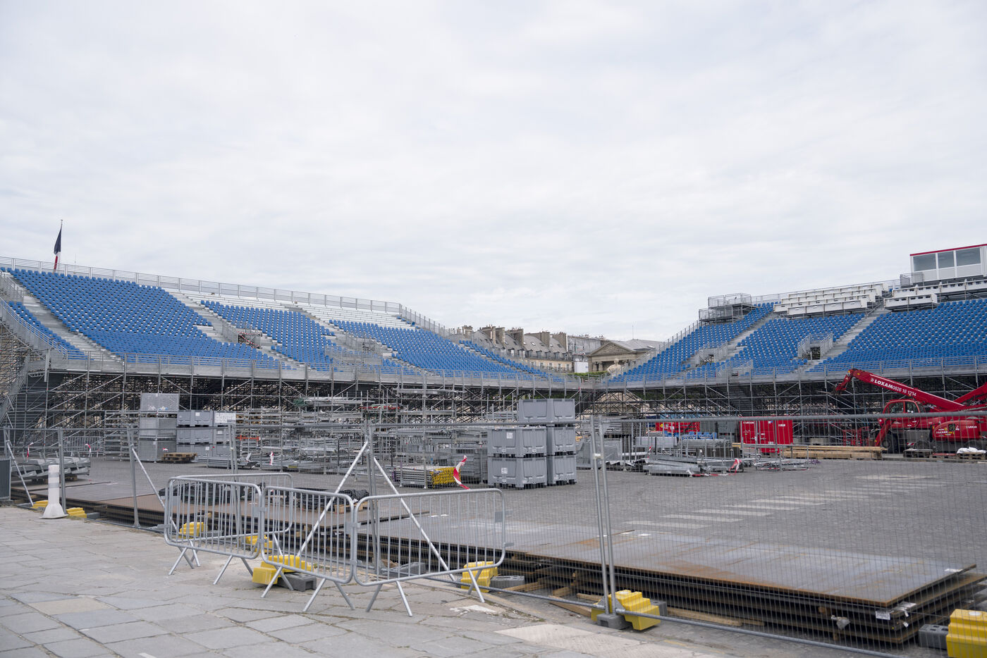 Installation of bleachers on Place de la Concorde in the run-up to the JOP PARIS 2024 Summer Olympic and Paralympic Games.