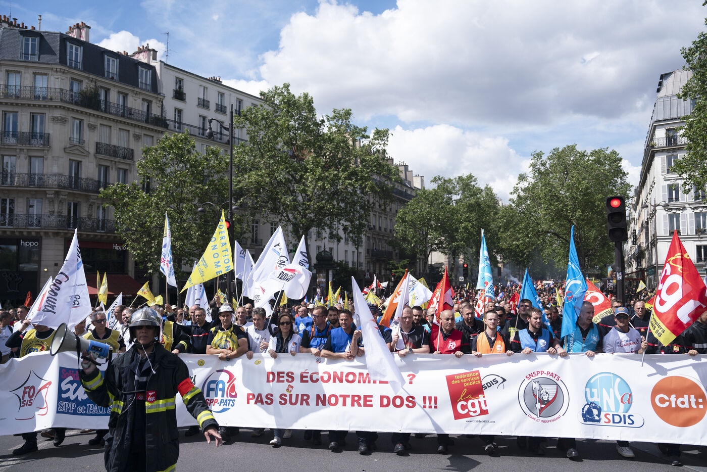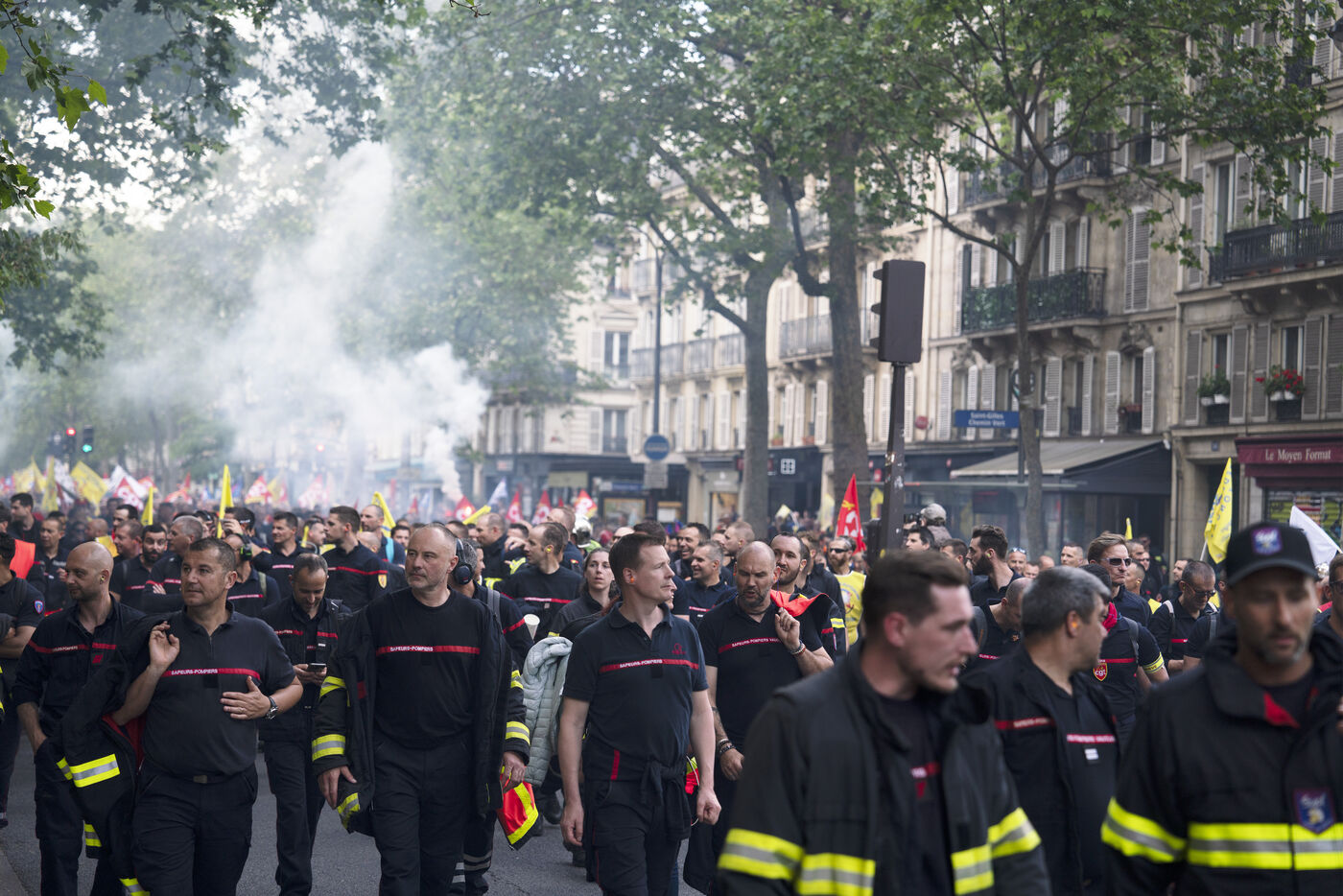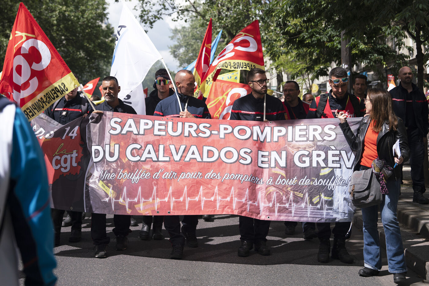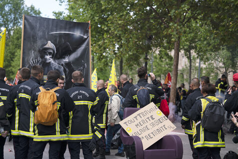 Firefighters' strike and demonstration between Place de la République and Nation, Paris, Thursday, May 16, 2024.