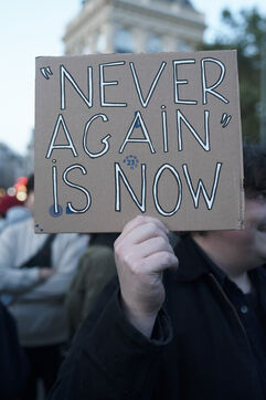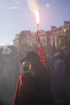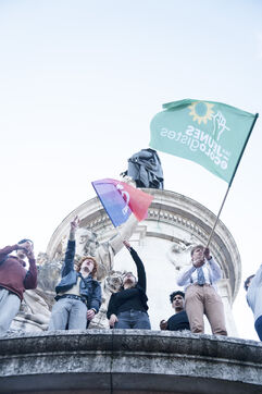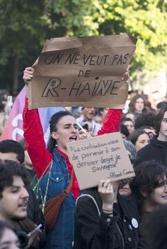 Rassemblement puis troisième soirée de manifestation spontanée contre l'extrême droite, après que le Rassemblement National et Jordan Bardella aient obtenu un score record de 31,5 pourcents aux élections européennes 2024, à Paris. La manifestation est partie de Place de la République puis s'est divisée en plusieurs groupes dans les rues de Paris. Le 11 juin 2024.