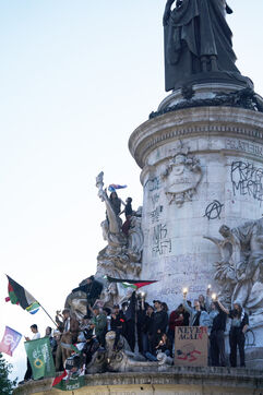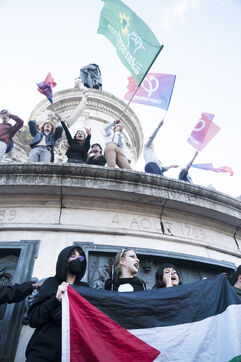 Gatering then third evening of spontaneous demonstration against the far right, after the Rassemblement National and Jordan Bardella scored a record 31.5 percent in the 2024 European elections, in Paris. The demonstration started from Place de la République and then split into several groups in the streets of Paris. June 11, 2024.
