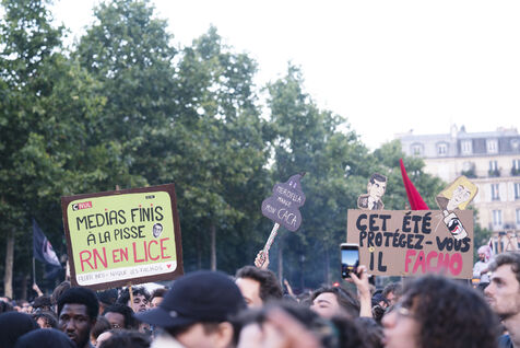 Rassemblement pour célébrer les résultats du Nouveau Front Populaire aux élections législatives à Paris
