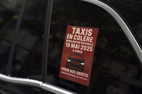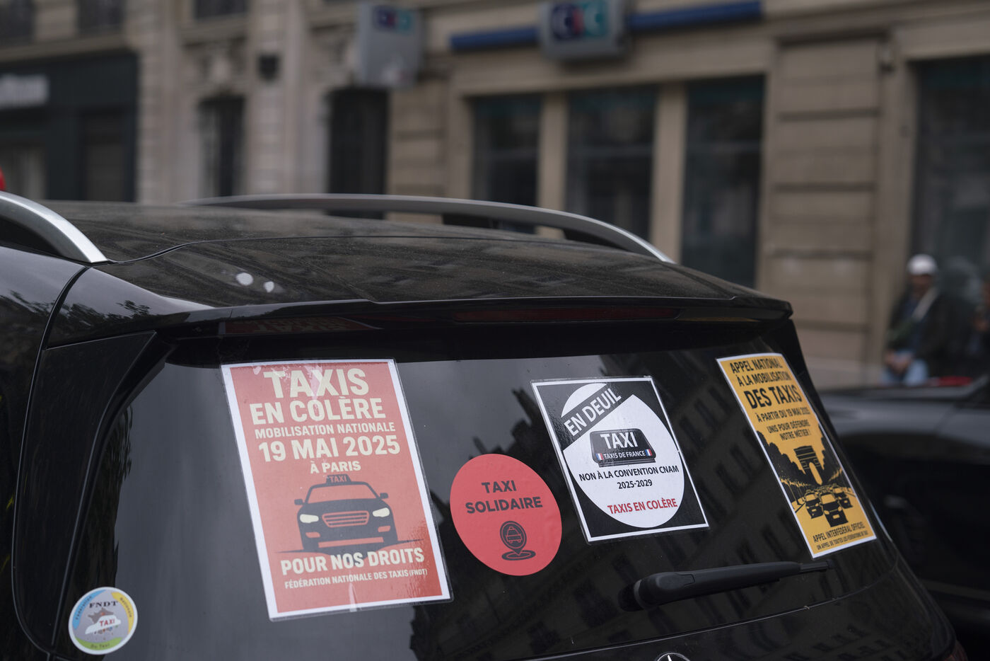 Cab strike: further blockade action by striking cab drivers in Paris, against proposed changes in the way the state funds medical transport services, near the Ministry of Transport, May 25, 2025.