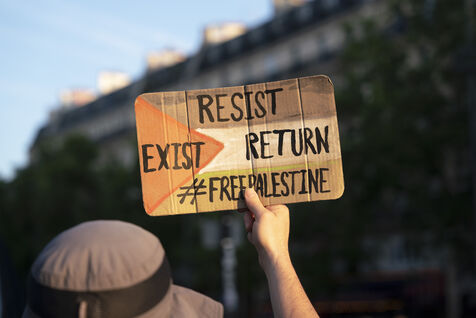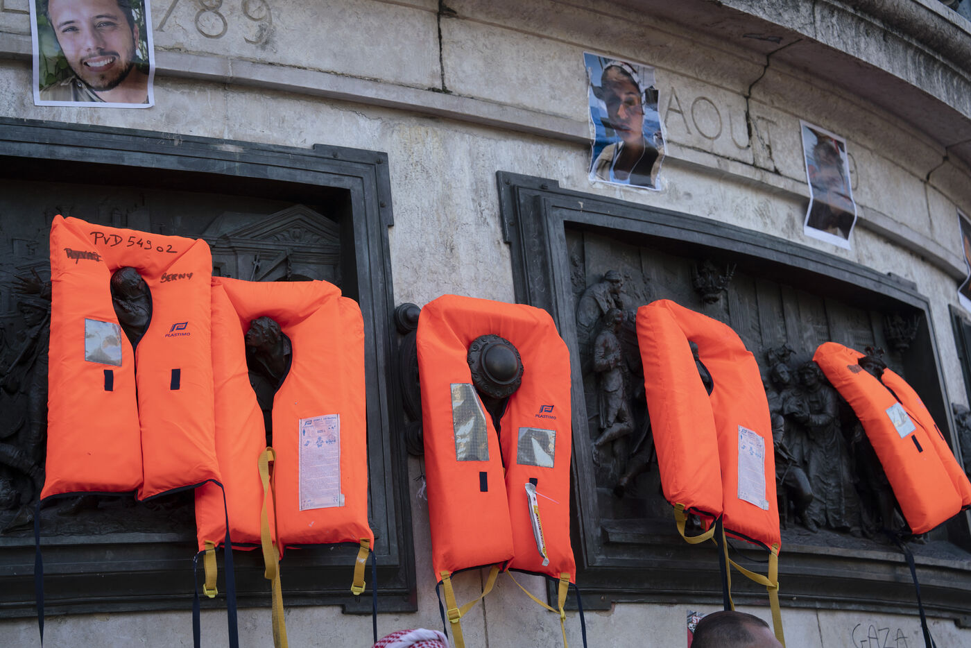 Third evening of rallies and occupations in support of the Freedom Flotilla, Place de la République, Paris. The boat carrying 12 pro-Palestinian activists denouncing Israel's humanitarian blockade of the Gaza Strip was spotted and intercepted in waters close to Gaza the day before, and the activists have been unable to communicate with the outside world since. Among the 12 activists on board were several French nationals, including MEP Rima Hassan, as well as the young Swedish woman Greta Thunberg. They are activists, humanitarians, journalists and doctors, French, German, Brazilian, Turkish, Swedish, Spanish and Dutch, who left Italy on June 1 to break the Israeli blockade of Gaza. June 11, 2025.