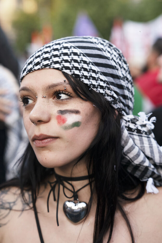 Retour de Rima Hassan à Paris, Place de la République, après sa détention par Israël à la suite de l'interception de la Flotille de la liberté. Le bateau transportant 12 militants propalestiniens qui dénoncaient le blocus humanitaire d'Israël dans la bande Gaza avait été repéré et intercepté dans les eaux proches de Gaza.