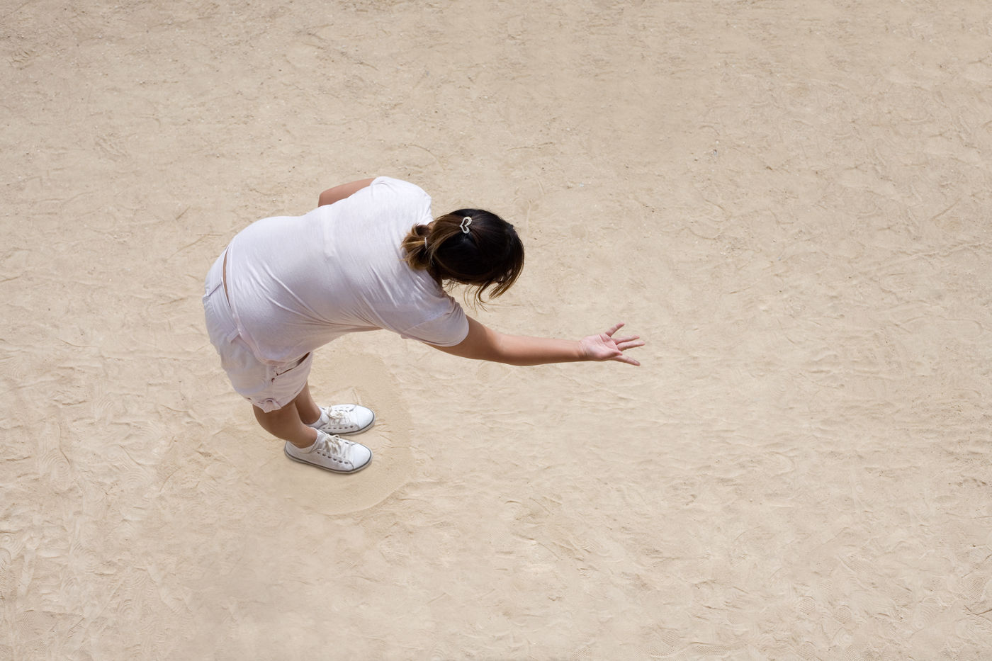 Dans ces photographies de boulistes mis à nu, les joueurs sont dépossédés de l'objet au centre de leur action. Ne subsiste que le mouvement arrêté, le geste, l'attitude. Les êtres photographiés ainsi à la sauvette en plongée se retrouvent épinglés sur un fond uniforme, soumis à notre regard surplombant, un peu comme des spécimens d'insectes ou de papillons épinglés sur une planche dans la vitrine d'un musée.