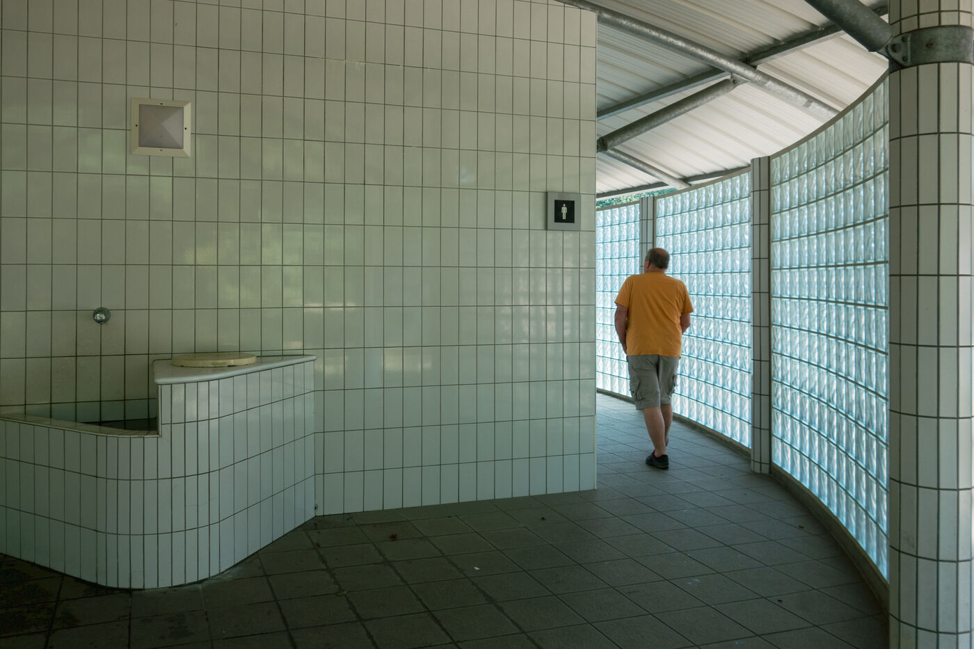In a continuous movement where holidaymakers and transporters intermingle, this hustle and bustle reproduces customary gestures in an almost unchanging setting, giving the impression of a film scene that starts up again each time you stop.