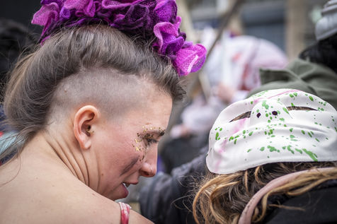 Le collectif d'artistes toulousain Mix'Art Myrys organisait une manifestation. Les participants étaient invités à venir masqués, déguisés et équipés pour faire du bruit, pour que « la réduction au silence leur casse les oreilles »