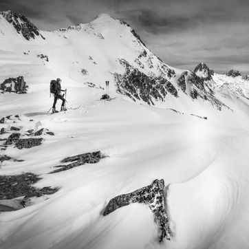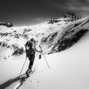 A woman goes on a 3-day ski tour in the Pyrenees. She left from Cauterets and visited the Spanish refuges of Batchimana and Respomuso. The refuges are managed by guards and remain open during the confinement period. She climbs with the help of "sealskins" stuck under her skis. When she reaches the top, she takes them off to ski down.