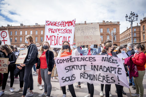 In Toulouse, the midwives who joined the national strike, demonstrated on the place of Capitole, for the recognition of their status and wage demands.