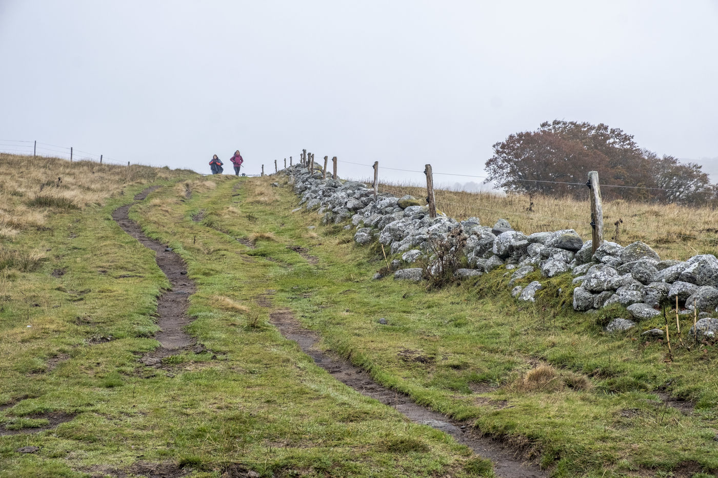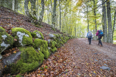 FRANCE - OCCITANIA - HIKERS ON THE AUBRAC PLATEAU IN AUTUMN.