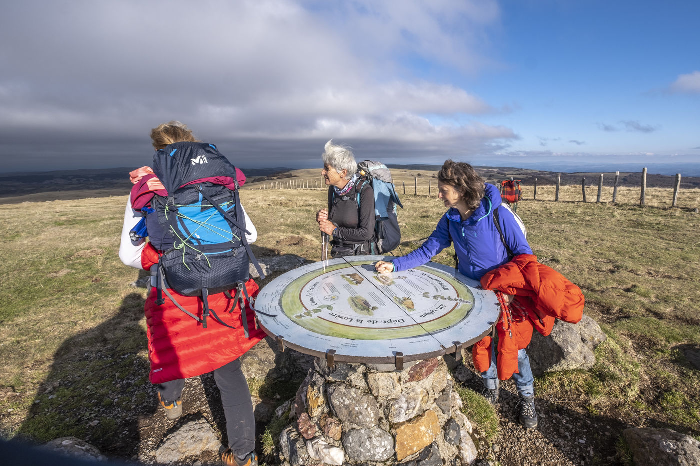Entre la Lozère et l'Aveyron, 3 amies font une randonnée sur le plateau de l'Aubrac en automne.
