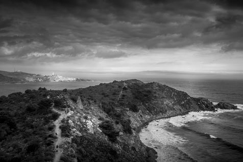 France, Occitanie. Dans le département des Pyrénées Orientales, un sentier côtier relie les petites villes de Port-Vendres et Banyuls en passant par le cap Béar. La côte est essentiellement rocheuse, même si quelques petites plages restent accessibles.