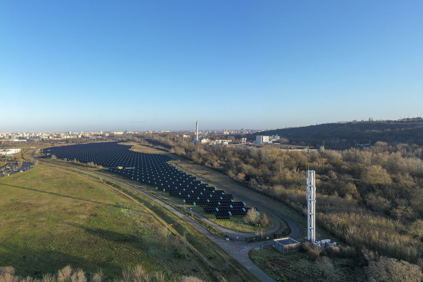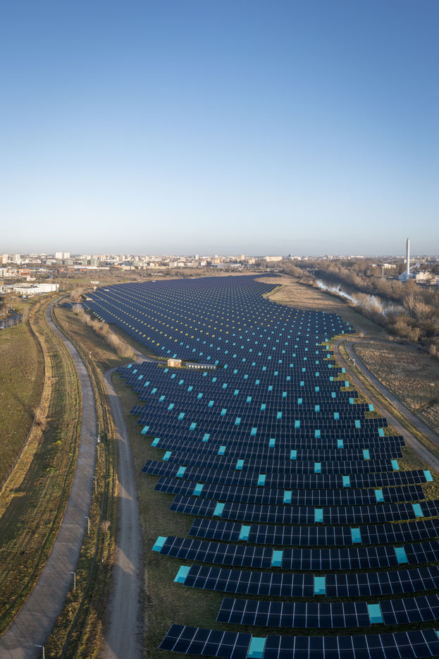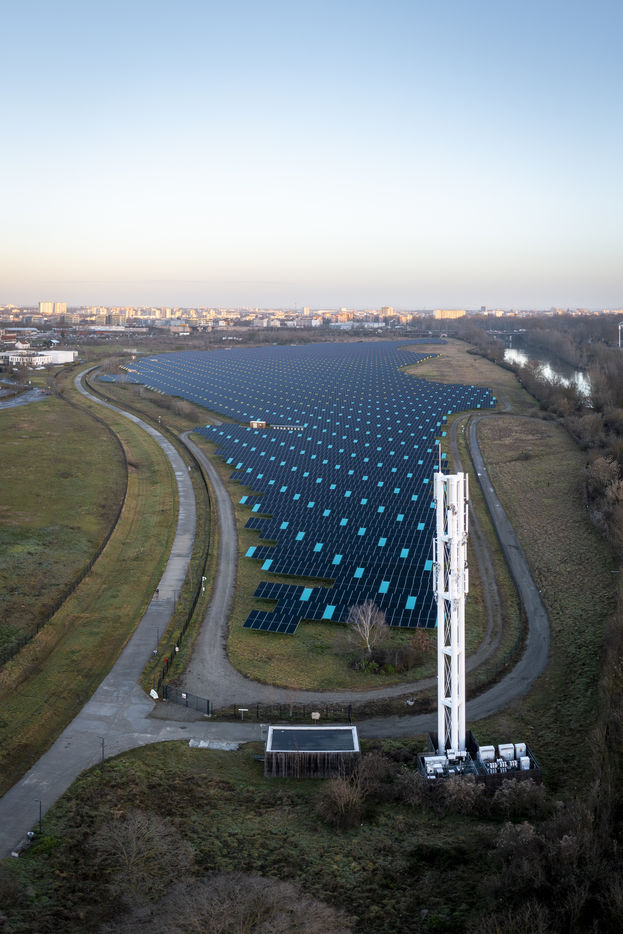 The largest urban solar power plant in France is installed on the Oncopole site in Toulouse. Installed on 25 hectares of the former AZF factory site, it has been in operation since 2020 and produces 20 million kWh per year, equivalent to the consumption of more than 4,000 households. It is operated by the company Urba Solar. Seen from the sky, and thus from the future Téléo urban cable car, its design is particularly neat thanks to the coloured panels placed between the photovoltaic panels.