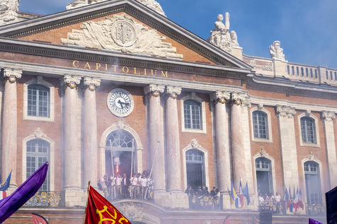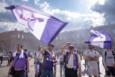 Toulouse football club fans gathered in the Place du Capitole to celebrate their team's victory in the French Ligue 2 championship. They will play next season in Ligue 1.