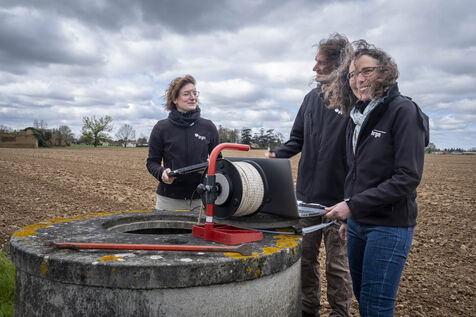 Pauliana is a hydrogeological technician at the geological and mining research bureau of Toulouse (BRGM). Every month, she visits the wells and springs of the former Midi-Pyrénées region where devices are installed to measure the level of the water table in real time in order to check that they are working properly and that the data are valid. She is now accompanied by two BRGM engineers. Poliana then enters the data on the BRGM servers, which publishes a situation report on its website, updated 10 times a year.