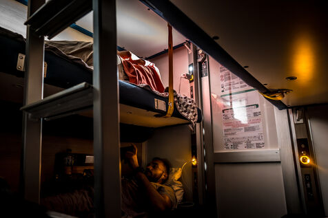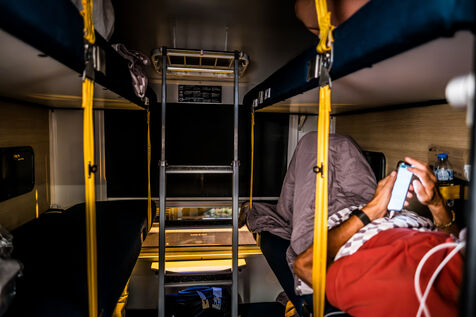 Un voyage en train entre les gares de Paris-Austerlitz et Toulouse-Matabiau. Les trains de nuit avaient totalement disparu en France en 2017, avant de réapparaitre à partir de 2021. Il existe aujourd'hui 8 destinations en France desservies par le train de nuit à partir de Paris. En 2ème classe, il y a 6 couchettes par compartiment et, en plus de la couverture et de l'oreiller, la SNCF fournit un kit pour la nuit, avec des boules-Quilès, un masque, des lingettes et du dentifrice à croquer.