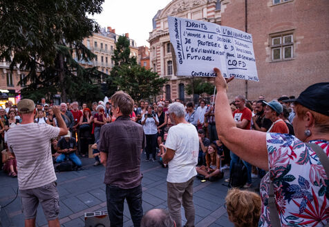 Le collectif citoyen la Voie est libre qui lutte contre le projet autoroutier entre Toulouse et Castres (autoroute A69) organisait un rassemblement après le rejet de la demande de suspension des travaux par le tribunal administratif. Les manifestants ont organisé une cérémonie d'enterrement de l'état de droit. Plusieurs grévistes de la faim étaient présents.