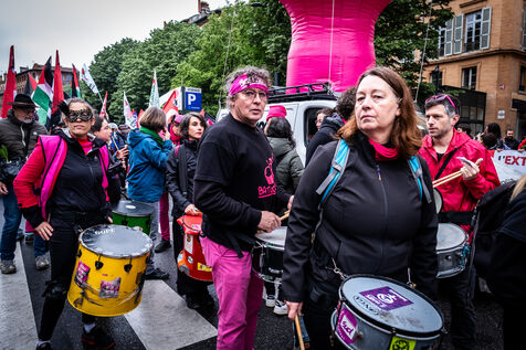 Plusieurs milliers de manifestants se sont regroupés à Toulouse à l'occasion du traditionnel défilé du 1er mai. Au-delà des revendications syndicales pour l'emploi, les salaires ou contre l'austérité, de nombreux manifestants ont aussi exprimé leur soutien à la Palestine.
