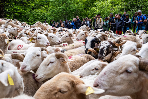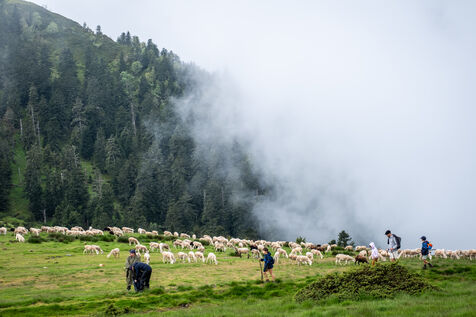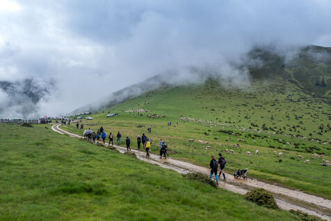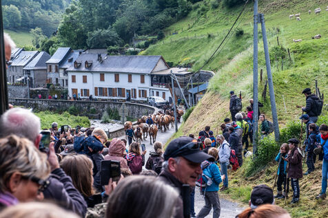 Every year, the departure of the herds for the summer pastures is a celebration. More than 300 people came to the Biros valley to accompany the animals and shepherds who will be staying all summer in the mountains on the Bellongue summer pasture. To mark this ancestral tradition, which attracts more and more people to the Pyrenean valleys every year, a large meal was served and the local folk group came to liven things up.