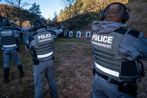 In addition to their protection and control missions, the agents of the Office Français de la Biodiversité (OFB) also have a policing mission. In order to carry out their duties in complete safety, they undergo regular training in shooting and intervention techniques.