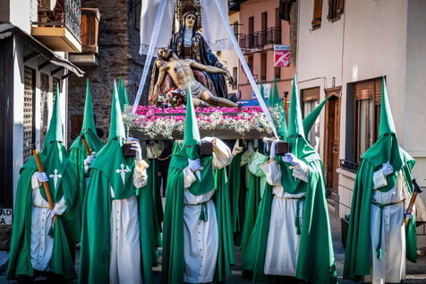 Since 1879, the small village of Bossóst, close to the French-Spanish border, has hosted 2 processions on Good Friday. Penitents in hoods and women in mantillas carry thrones along a Way of the Cross through the village. This Catholic tradition has existed in Spain since the 16th century.