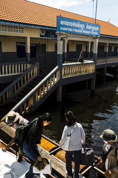 Durant la saison des pluies, entre Battambang et Siem Reap, un petit bateau taxi de la compagnie Angkor Express Boat, fondée par des cambodgiens, effectue le transport de passagers et le ravitaillement des villages flottants isolés sur la Sangker River.