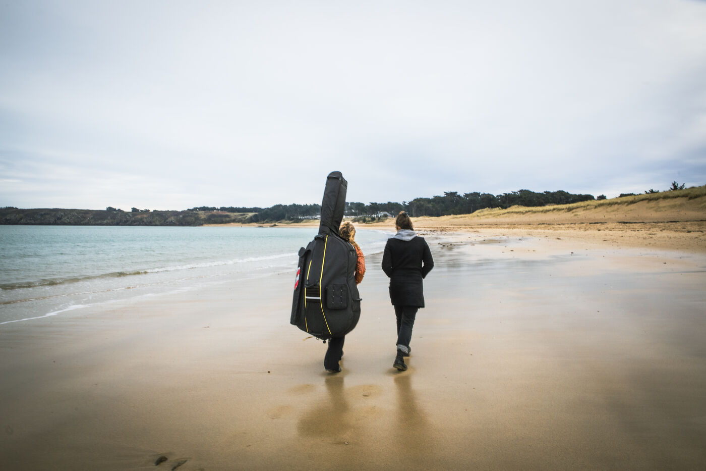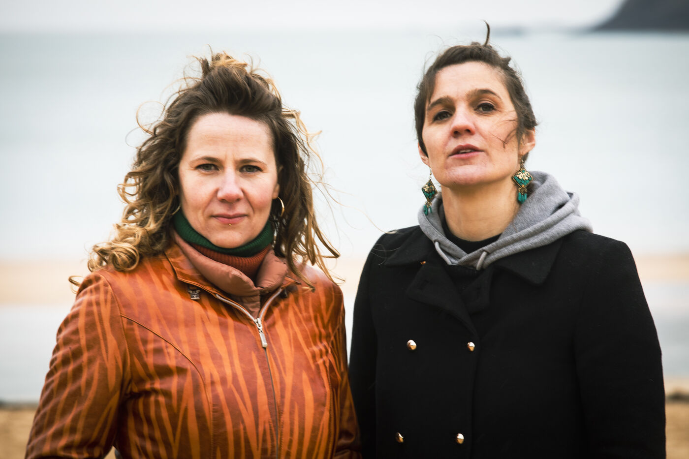 Portraits of Claire Laurent (vocals, writing) and Morgane Labbe (vocals, double bass, accordion, and composition). They rehearse indoors and outdoors. On Guimorais Beach and in a theater in a in Brittany. Claire (vocals, songwriting) and Morgane (vocals, double bass, accordion, and composition) are preparing their new show: Dérive (to be released in October 2025). A concert-story following in the footsteps of Ulysses. A great mythological epic with modern accents, where we encounter the tormented characters of the Odyssey.