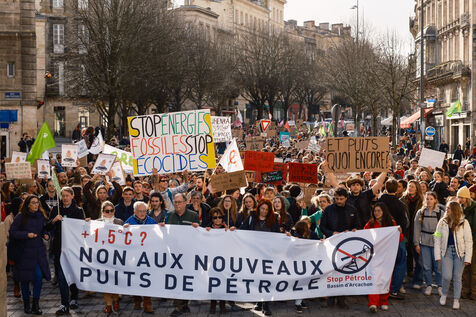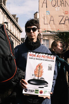Demonstration against new oil wells in the Arcachon basin. Around 3,000 people came to protest and ask the prefect to ban the creation of 8 new oil wells by the Canadian company Vermilion in the commune of La Teste de Buch, behind the Dune du Pilat.