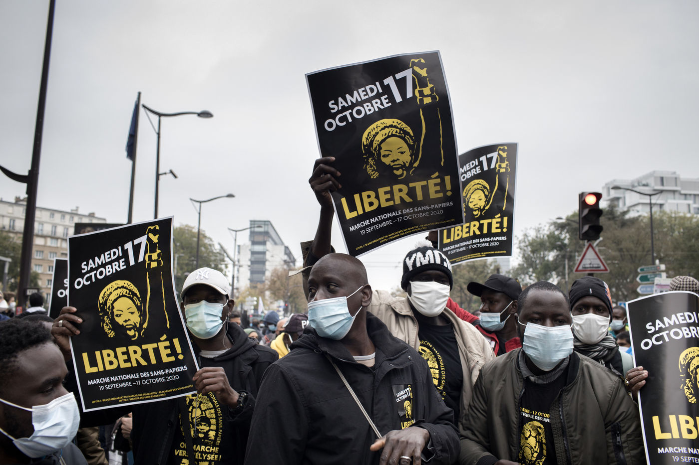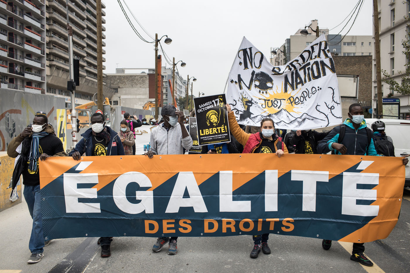 Some of them walked up to 800 kilometres to reach Paris and converge on the Elysee Palace on 17 October 2020. Leaving Marseille, Rennes or Strasbourg almost a month earlier, hundreds of undocumented migrants crossed France to demand their regularisation, but also the closure of administrative detention centres and the right to dignified housing. The Solidarity Walk was organised in support of their movement the day they arrived in the capital. Blocked by the police near the Church of the Holy Trinity, they were unable to achieve their goal.