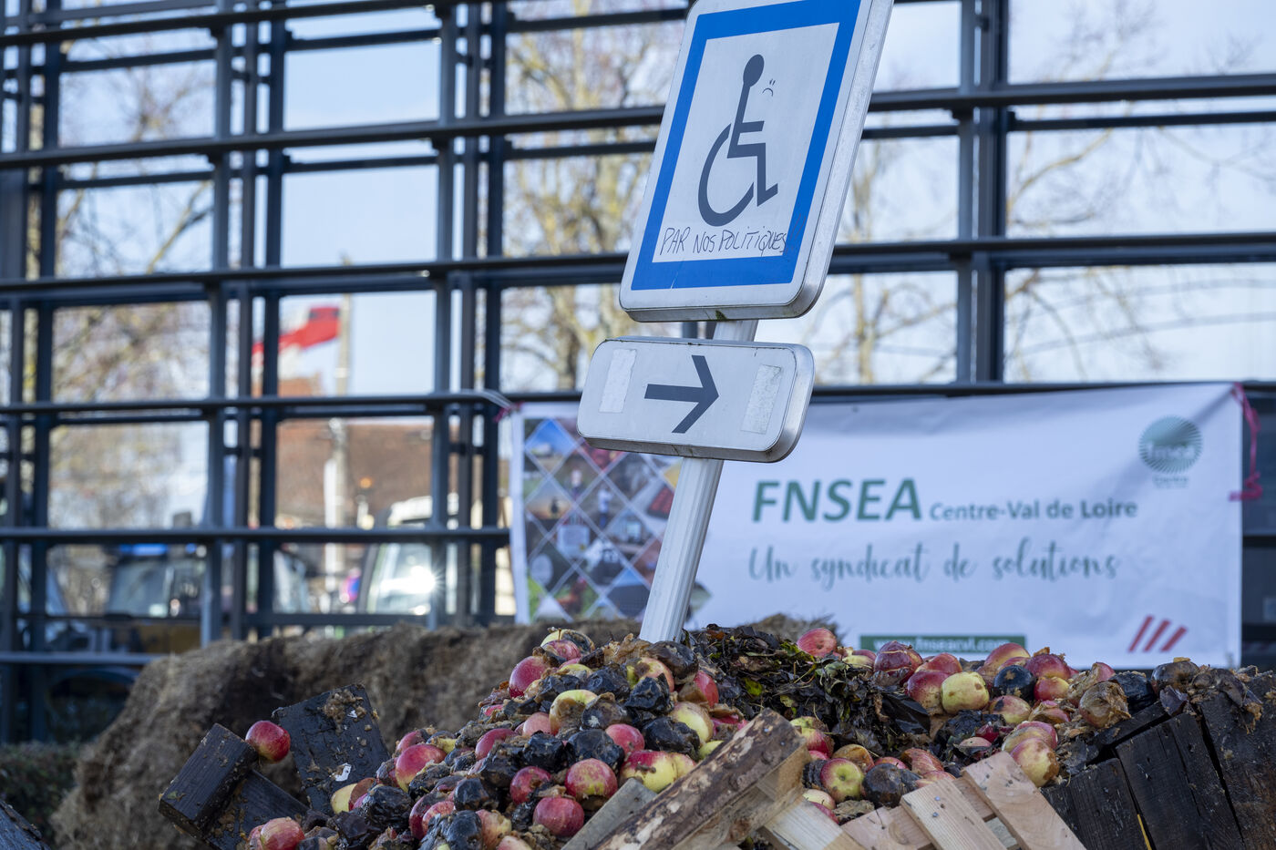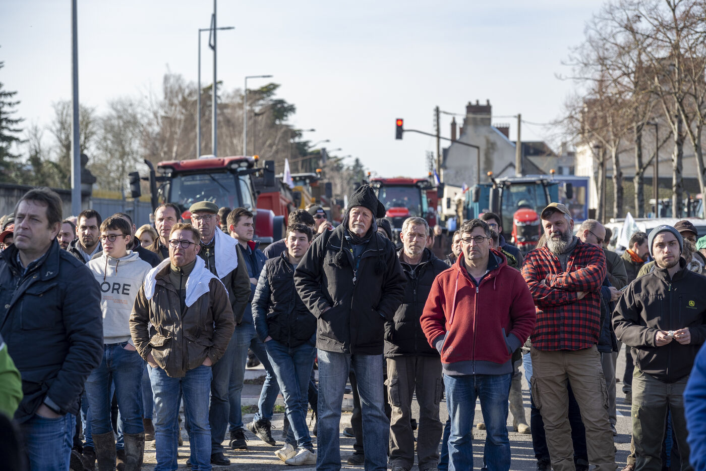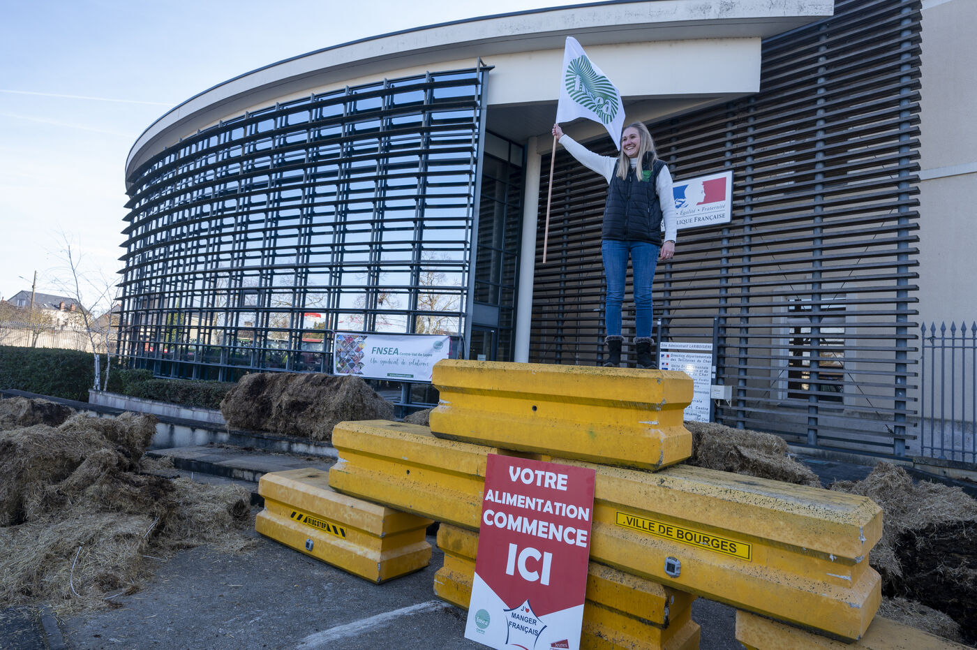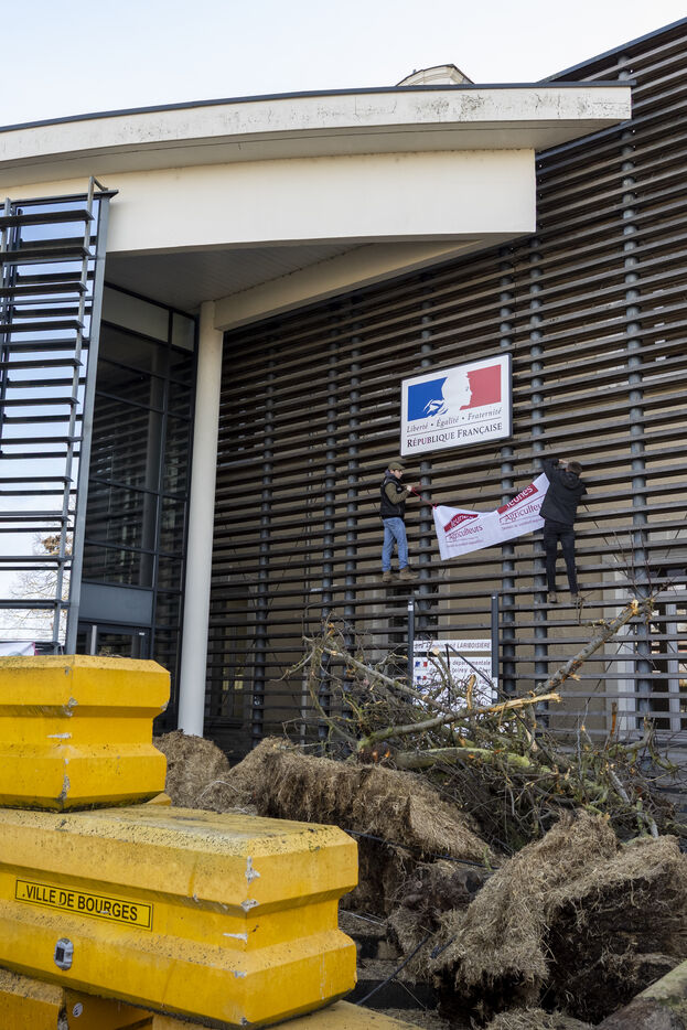 Farmers gathered in front of the Direction Départementale des Territoires building, in response to a call from the FNSEA and the young farmers of Cher.