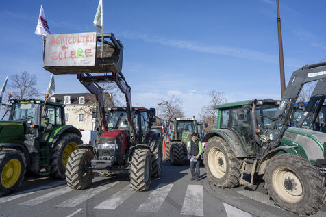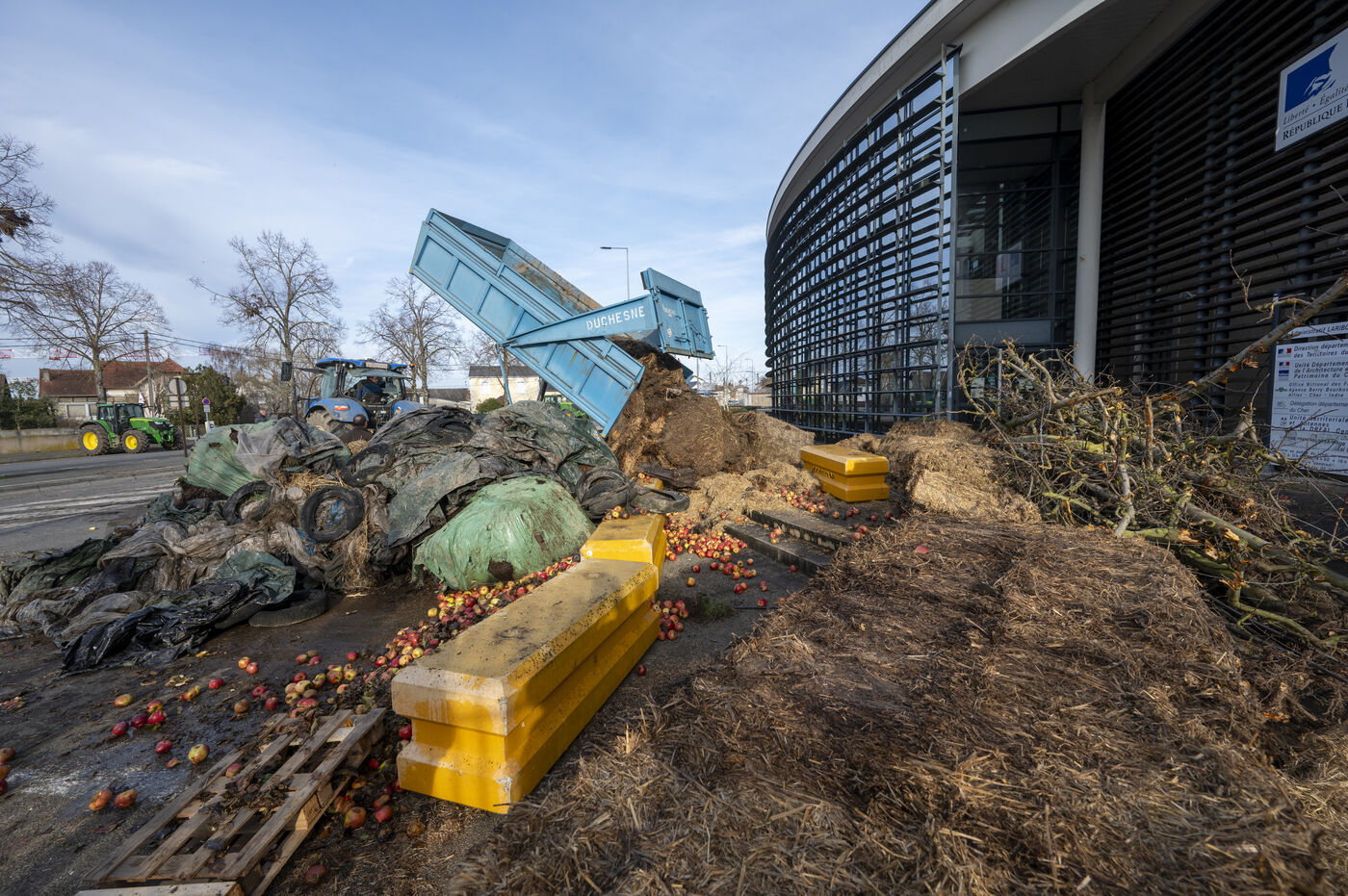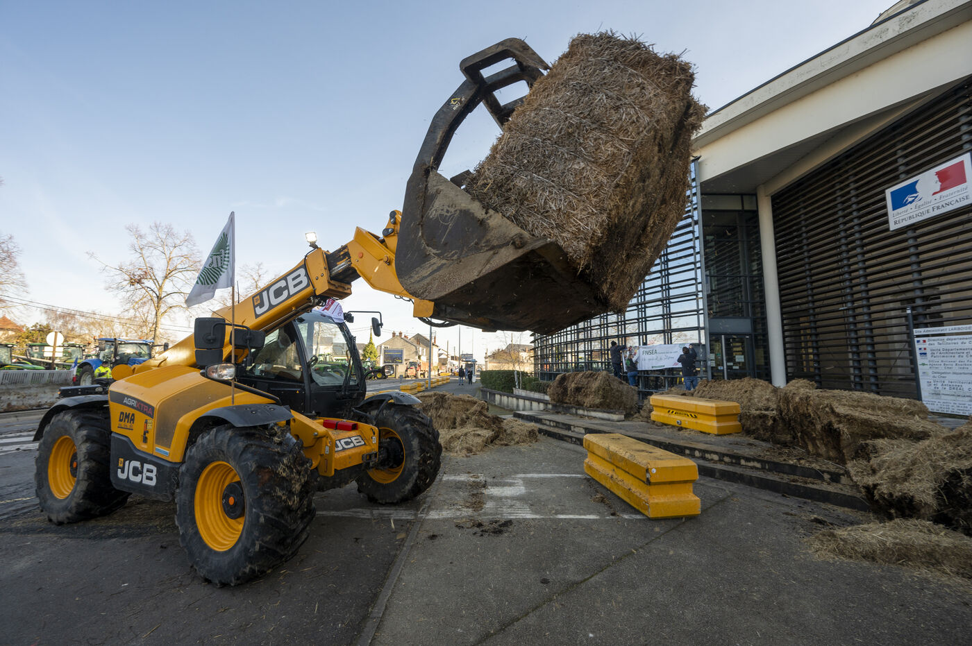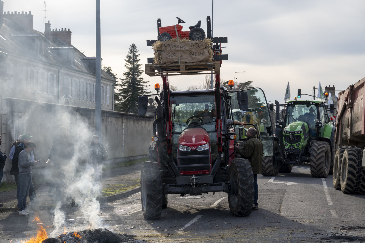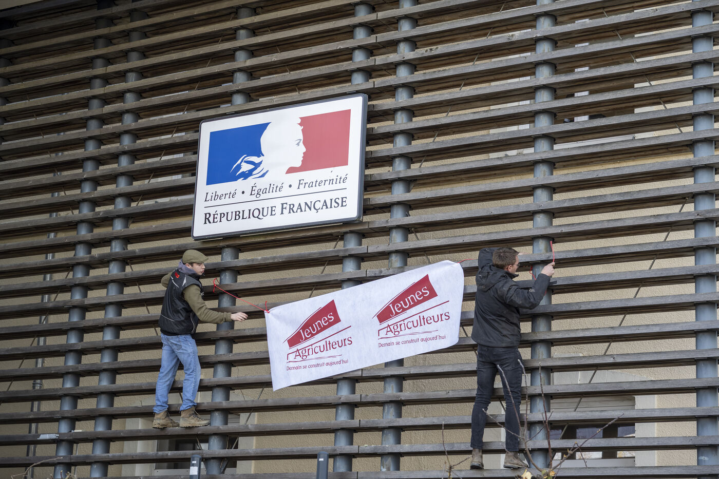 Farmers gathered in front of the Direction Départementale des Territoires building, in response to a call from the FNSEA and the young farmers of Cher.