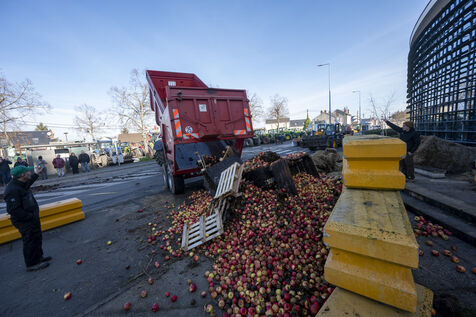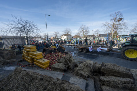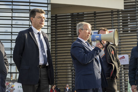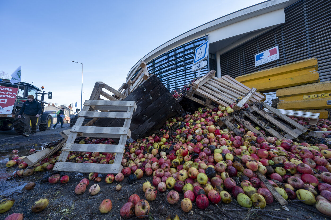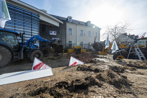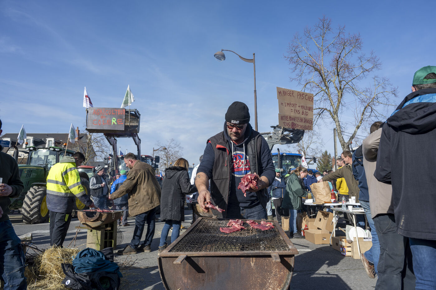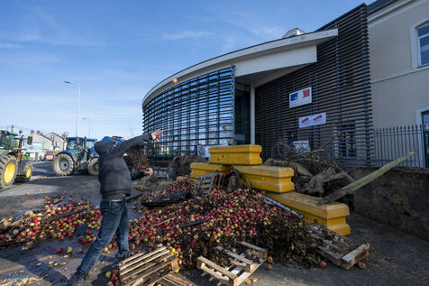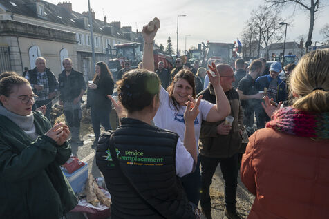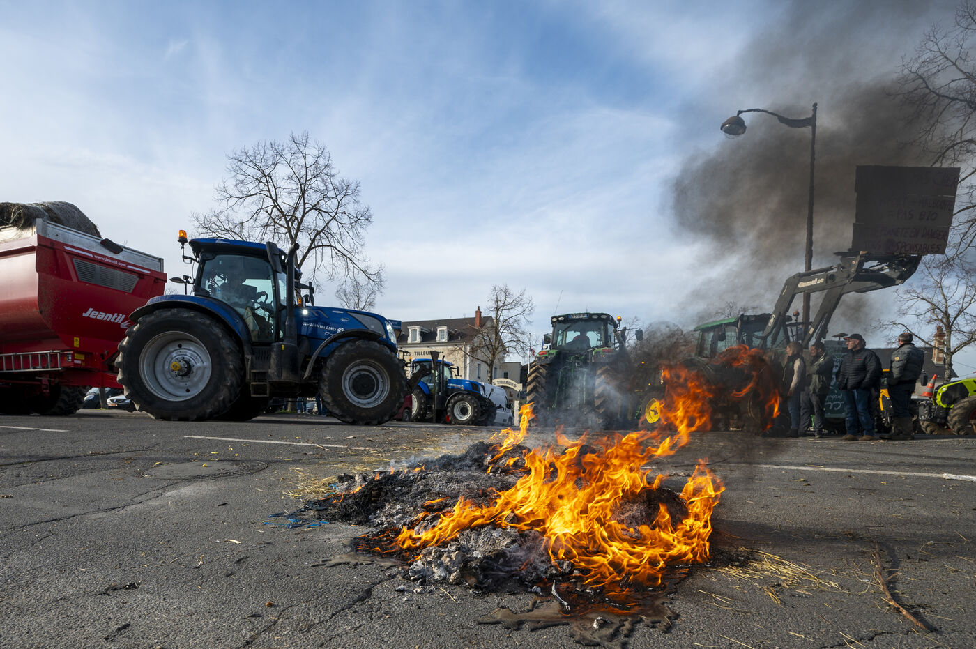 Farmers gathered in front of the Direction Départementale des Territoires building, in response to a call from the FNSEA and the young farmers of Cher.