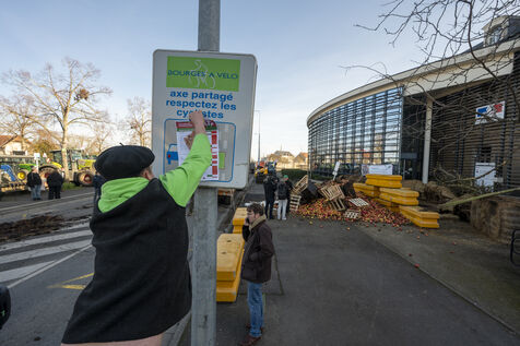 Les agriculteurs se sont réunis a l'appel de la FNSEA et des jeunes agriculteurs du Cher devant le batiment de la Direction Départementale des Territoires.