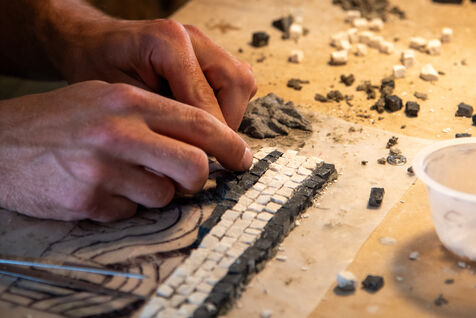 The Agios Georgios Krimmon Monastery on the island of Zakinthos in Greece is home to a mosaic workshop that welcomes monks from all over the world, as well as trainees who come to learn the art of mosaics.