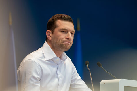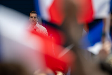 Marine Le Pen and Jordan Bardella at the victory party organised to celebrate the far-right parties' results in the 2024 European elections.