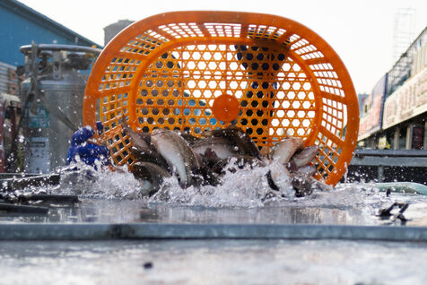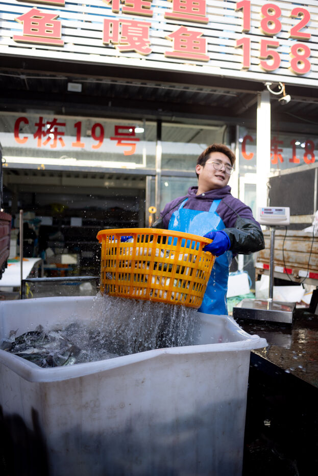 Workers at the WangSiYing Haixian fish market in Beijing are busy every day receiving hundreds of fish trucks.