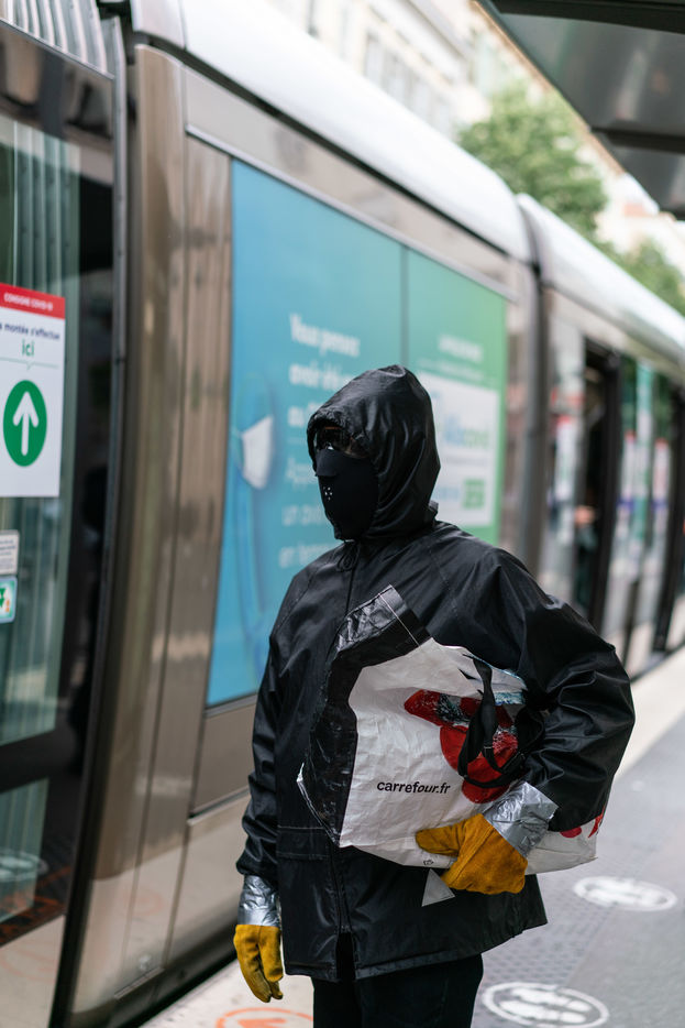 Il circule dans les quartiers de Nice depuis la crise du covid 19, mais personne ne sais qui il est, ni pourquoi il a adopté ce systeme d'ultra-protection composé de 3 masques superposés, du scotch sur les poignets et les chevilles, des lunettes noires et un kway à capuche. Les habitants du quartier Notre Dame l'ont surnommé "Ratapignata man "(l'homme chauve souris en Niçois). Il ne parle jamais, ne répond pas aux questions qu'on lui pose, mais j'ai il a accepté que je le suive pendant une heure?